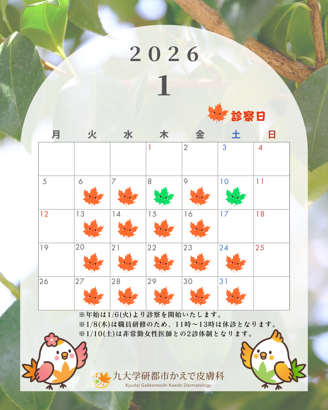 ・1/10(土):非常勤女性医師との2診体制でお待ちしています◎
