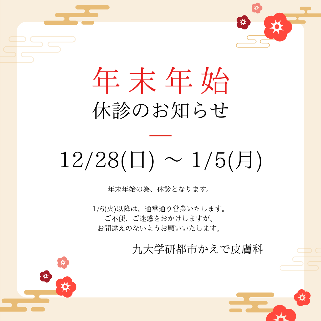 令和7年12月28日(日)~令和8年1月5日(月)まで休診とさせていただきます。