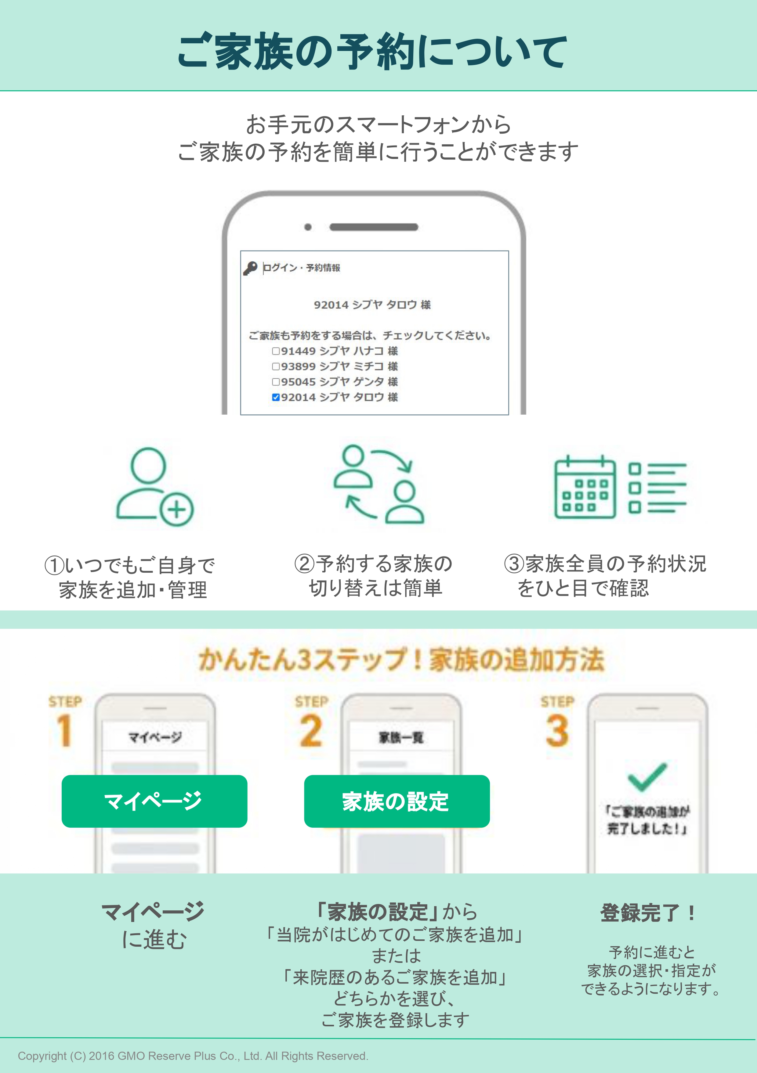 スマートフォンからご家族の予約を簡単に行うことできるようになりました。
