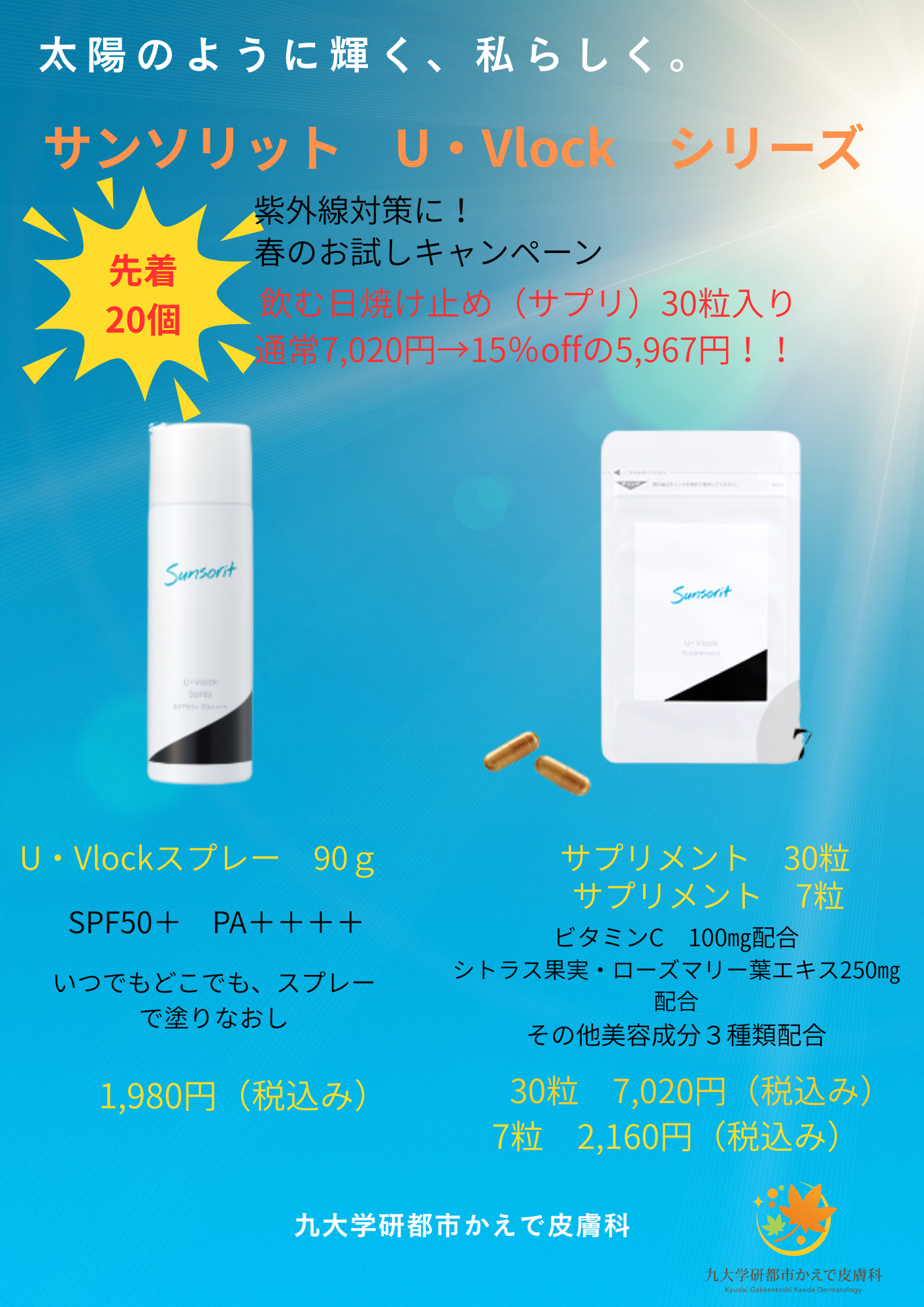 本格的な夏がやってくる前の紫外線対策にU・Vlockシリーズ春のお試しキャンペーンのご案内です。